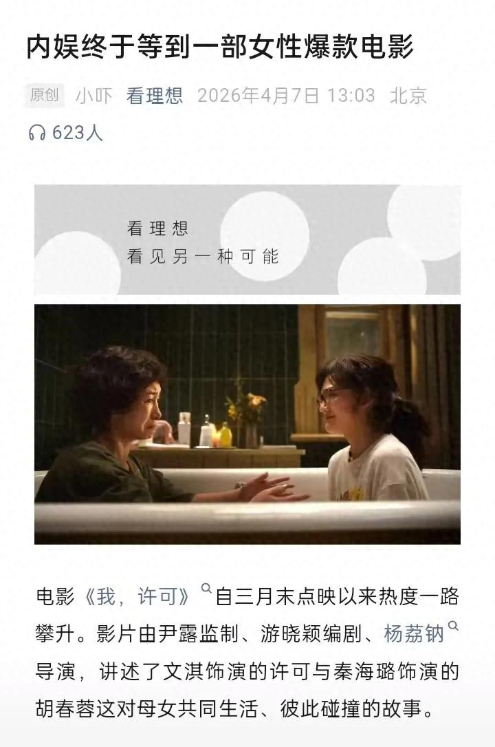 但最近又一个豆瓣高分女性倡导电影,杨荔钠的《我,许可》,却和这些电影东说念主基本该有的才略绝不沾边,让笔者在不雅影经由中全程尴尬跑神。